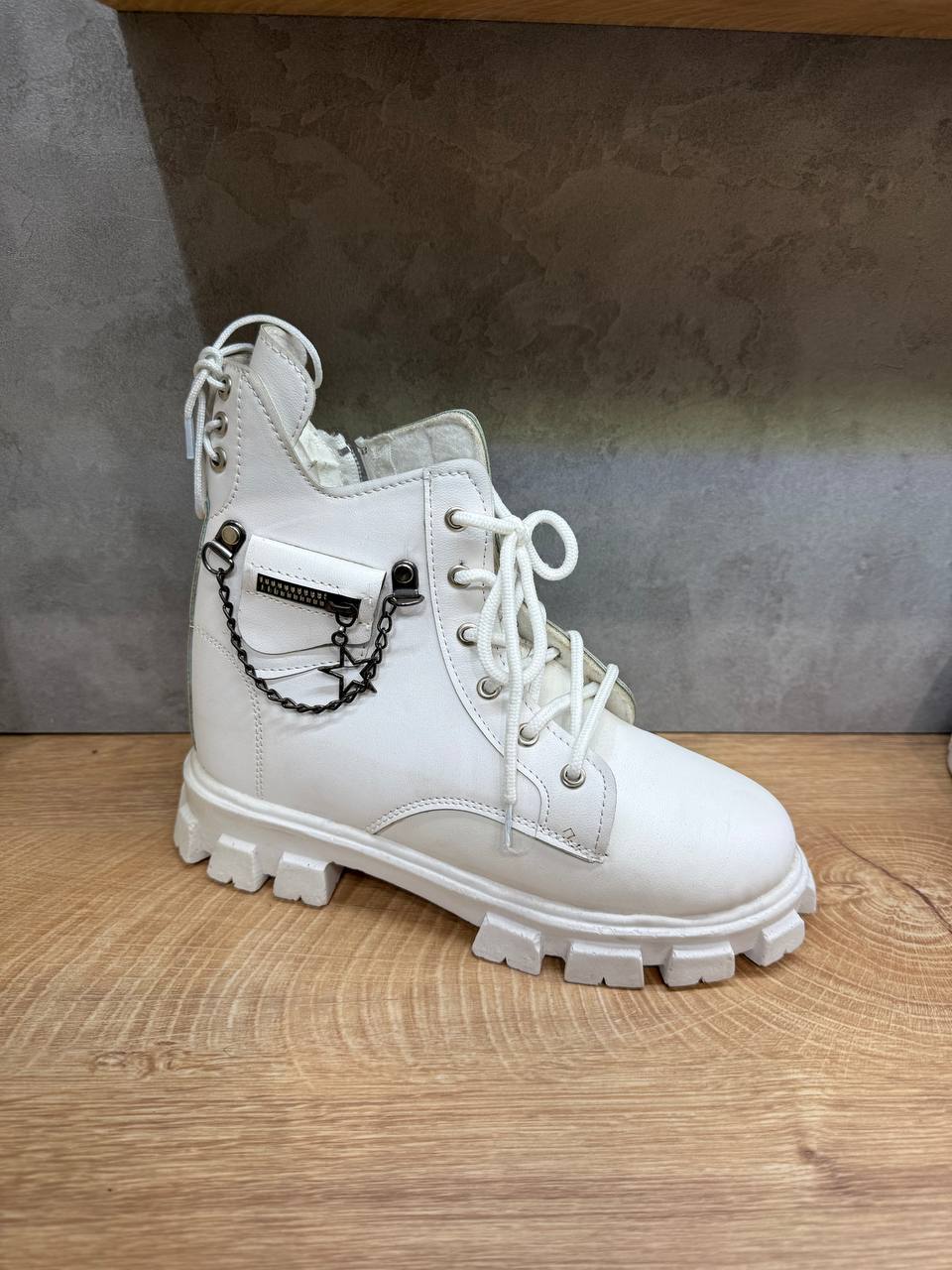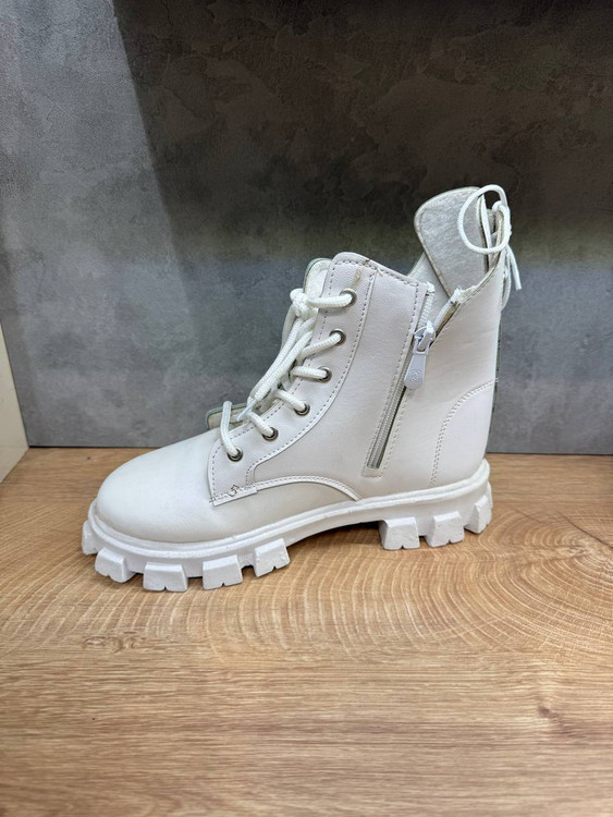 بوت دخترانه با زیره پییو بغل زیپ جلو بندی فقط رنگ سفید